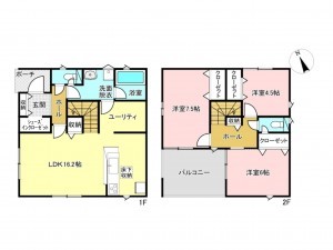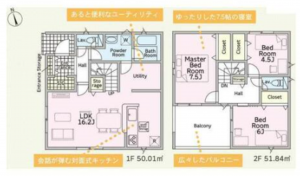 - システムキッチン、カウンターキッチン、洗浄便座、浴室乾燥機、複層ガラス、ルーフバルコニー、モニタ付インターホン、床下収納、トイレ2箇所
