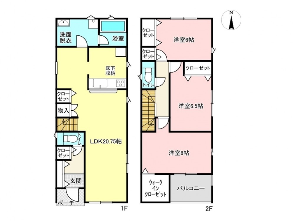 - システムキッチン、カウンターキッチン、シャンプードレッサー、洗浄便座、浴室乾燥機、追い焚き、複層ガラス、ルーフバルコニー、ウォークインクローゼット、モニタ付インターホン、床下収納、エコキュート、トイレ2箇所