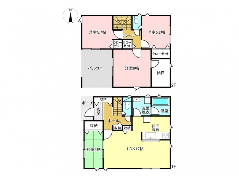 - システムキッチン、カウンターキッチン、洗浄便座、浴室乾燥機、複層ガラス、ルーフバルコニー、モニタ付インターホン、床下収納、トイレ2箇所
