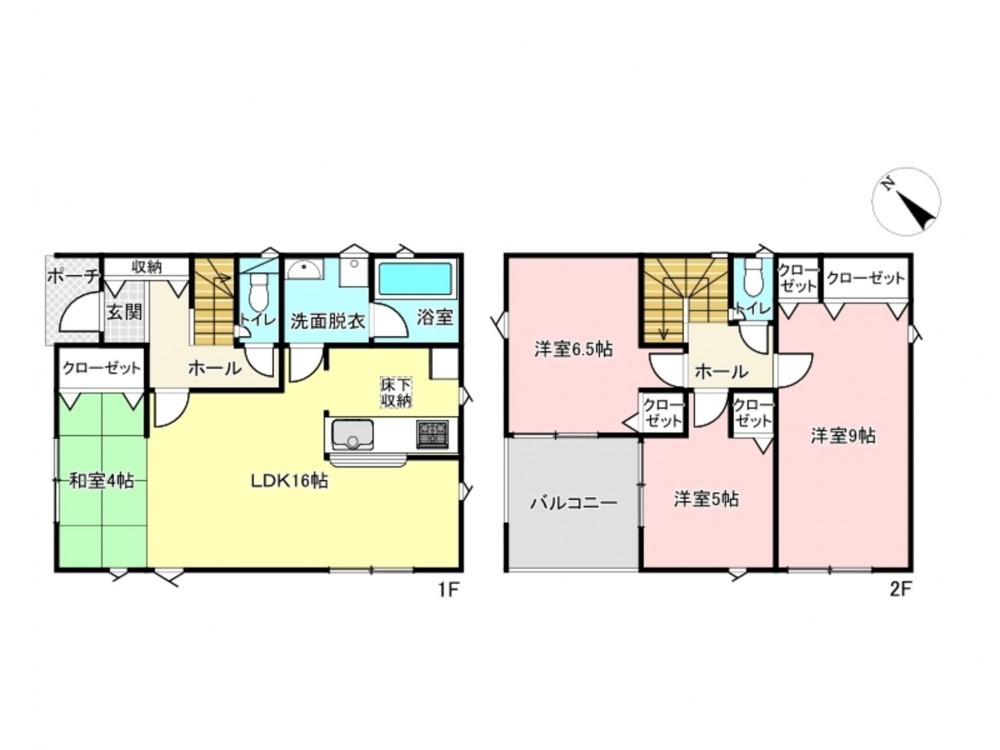 - システムキッチン、カウンターキッチン、洗浄便座、浴室乾燥機、複層ガラス、ルーフバルコニー、モニタ付インターホン、床下収納、トイレ2箇所