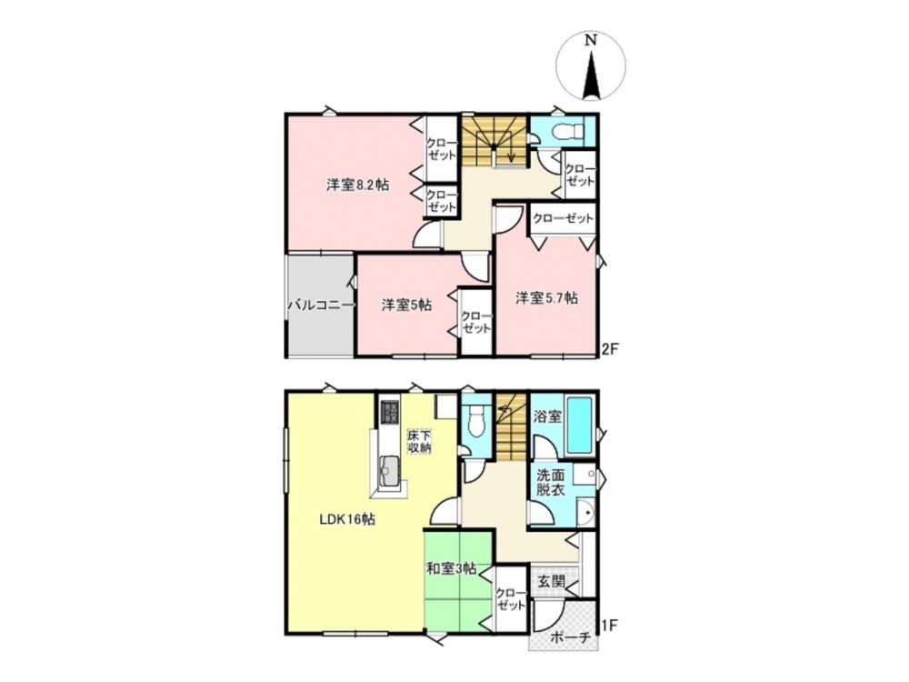 - システムキッチン、カウンターキッチン、洗浄便座、浴室乾燥機、複層ガラス、ルーフバルコニー、モニタ付インターホン、床下収納、トイレ2箇所