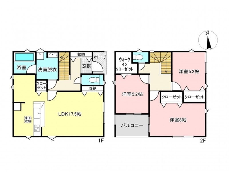 - カウンターキッチン、浴室乾燥機、ウォークインクローゼット、モニタ付インターホン、駐車場2台分、床下収納、トイレ2箇所